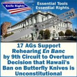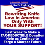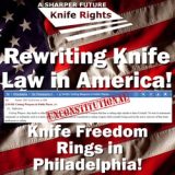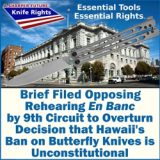 Knife Rights and its fellow appellants have filed a petition for rehearing En Banc (the full court) of the twisted decision by the Ninth Circuit Panel in their lawsuit challenging California’s ban on switchblade (automatic) knives with a blade 2 inches and greater on Second Amendment grounds. The petition argues that the panel disregarded binding U.S. Supreme Court and Ninth Circuit precedent by transforming California’s categorical ban into a fabricated concealed-carry law, … Continued... Read More