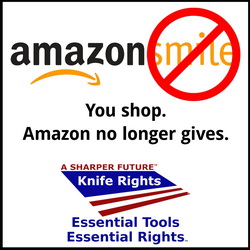 On February 20th, Amazon is ending its Amazon Smile donation program for non-profits that has been a very successful program for the Knife Rights Foundation. Doing so will likely save them millions and, perhaps as important, allow them to donate to programs they prefer and for which donations they can gain more publicity for themselves and their preferred causes. It no doubt annoyed them no end to fund numerous 501(c)(3) organizations which were anathema to their woke culture.