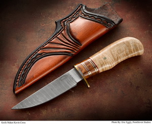 | Custom Craig Camerer Damascus Bowie donated by Camerer Custom Knives, Inc.