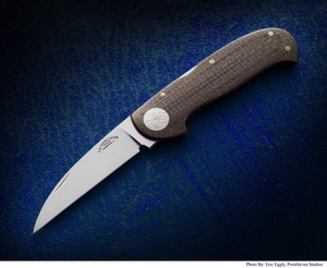 | Custom Joe Kious Portia modified wharncliff folder donated by Joe Kious