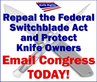 Getting this bill introduced is only the first step. We need your help to gain additional co-sponsors. Please email your Representative and urge them to co-sponsor this commonsense legislation. You can use Knife Rights’ Legislative Action Center to easily email your Representative in Congress at: http://www.congressweb.com/KnifeRights/23
