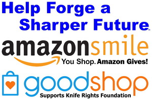 Whether you are holiday shopping or otherwise before or during Black Friday or Cyber Monday, through the holidays, you can support Knife Rights Foundation when you shop at Amazon Smile with Knife Rights Foundation as your supported charity or you shop via Good Shop. If you bookmark these pages, you can continue to support Knife Rights throughout the year when you shop.